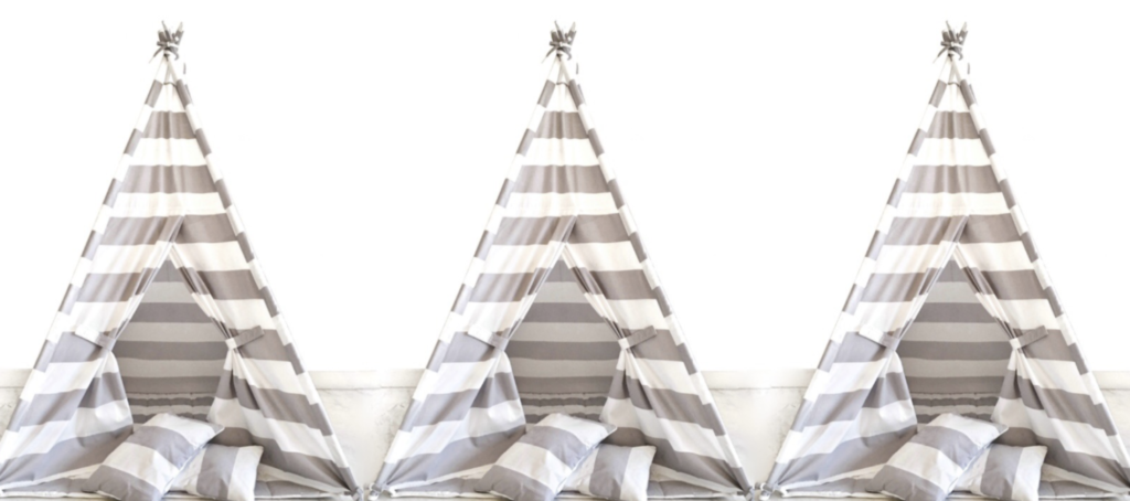 Etsy has over a 1,000 play tents and teepees to choose from. There are girly teepees with lace, black and white teepees for a sleek style, outdoor teepees, and teepees with stars, stripes, pompoms, matching mats, and cushions in a variety of colors and sizes. Choose the one that’s right for you then relax with your kiddos on a pile of cushions, a good book and enjoy the quality time that ensues!