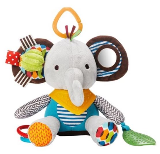 Has your little one started teething? Check out the Bandana Buddies Activity Toy, this super soft toy and teether filled with textures, patterns, and sounds! There are many colorful characters to choose from, like adorable elephants in pastel colors or the more vibrantly colored monkey and many more. The colorful character's soft bandana teether detaches for mom to wear around her wrist for quick access and is ideal for multi-sensory play, this cute buddy is perfect for fun at home or-on-the-go.
